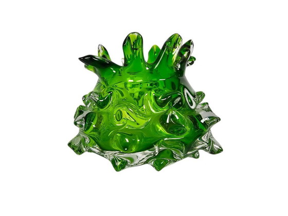 Entdecken Sie den einzigartigen Charme der „Pickelvase“ von Jan Beranek, einem Meisterwerk tschechischer Glaskunst aus den 1970er-Jahren. Diese markante Vase kombiniert einen leuchtenden Grünton mit transparenten Akzenten und erzeugt so ein faszinierendes Licht- und Farbspiel.