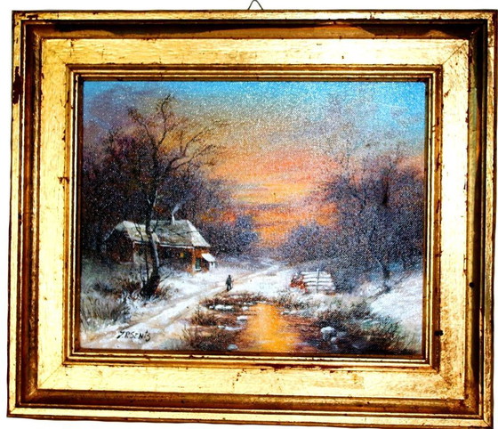 Original Ölgemälde auf Leinwand mit vergoldeten Rahmen von Belgischen Maler J. P. Sentz (gelebt in Wien).