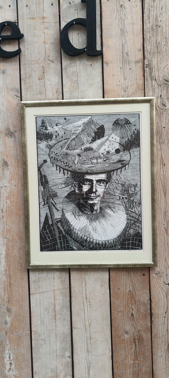 Entdecken Sie die faszinierende Welt von Jerzy Jędrysiak mit diesem wunderschönen Holzschnitt, einer Hommage an Hendrick van Prooije. Jędrysiak wurde 1954 in Zakopane geboren und schloss sein Kunststudium an der renommierten Akademie der Schönen Künste in Krakau ab. Sein Werk, das sowohl Linolschnitte als auch Zeichnungen umfasst, ist international anerkannt und in zahlreichen Museen und Privatsammlungen ausgestellt.