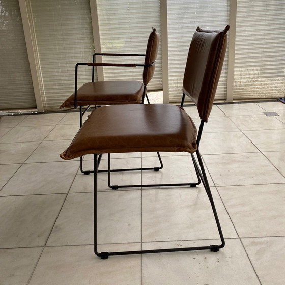 Jess Design Norman Esszimmerstuhl (2er-Set) Dieses Set aus zwei Norman Esszimmerstühlen von Jess Design besticht durch sein elegantes, modernes Design. Ein Stuhl verfügt über Armlehnen, der andere nicht und bietet so vielseitige Sitzmöglichkeiten. Die Stühle sind mit edlem braunem Leder bezogen und harmonieren perfekt mit den robusten schwarzen Metallgestellen. Ideal, um jedem Esszimmer einen Hauch von Eleganz zu verleihen.
