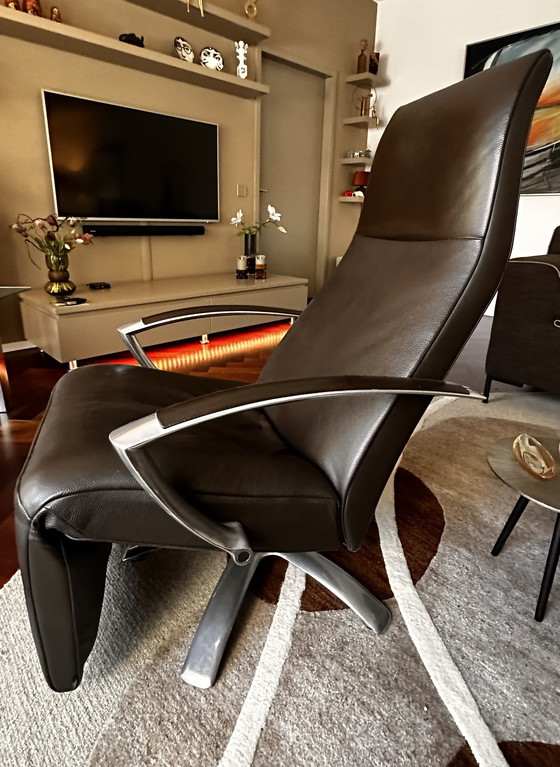 - Gefertigt aus luxuriösem braunem Leder, bietet dieser Stuhl nicht nur eine edle Optik, sondern auch Langlebigkeit und Komfort.