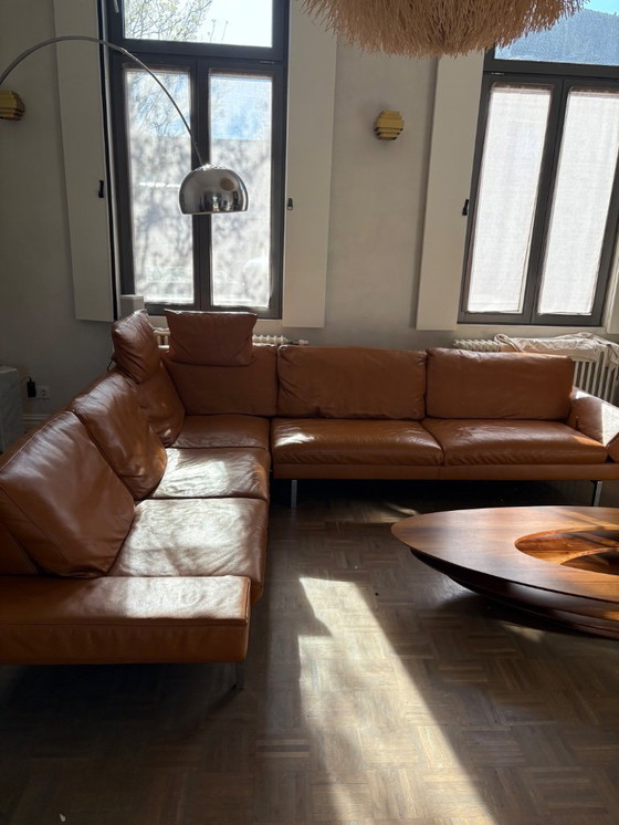 Entdecken Sie dieses wunderschöne Ecksofa Jori aus Leder – ein echter Blickfang für Ihr Wohnzimmer. Das warme Braun des Leders strahlt Luxus und Komfort aus und lädt zum Entspannen nach einem langen Tag ein.
