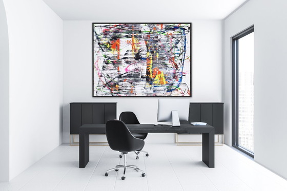 Abstraktes Gemälde auf Leinwand des österreichischen Künstlers Jürgen Angeler. Gemalt mit hochpigmentierter Acrylfarbe. Starke, robuste und knickfeste Leinwand in Galeriequalität (210 g/m²).