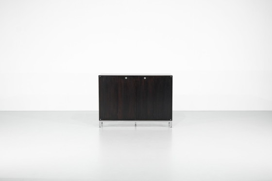 Holzbuffet, entworfen auf einem verchromten Metallsockel, die Schmetterlingstüren sind hübsche Details, mit dem Schlüssel. Schöne Restaurierung des Holzes. Entworfen von Jules Wabbes für Le Mobilier Universel, Belgien 1960er Jahre. Entwerfer - Jules Wabbes. Hersteller - Le Mobilier Universel. Produktionszeitraum - 1960er Jahre. Abmessungen - Breite 120 cm x Tiefe 45 cm x Höhe 86 cm . Material - Holz, Metall. Farbe - Holz, Spiegel. Zustand des Artikels, Anmerkungen - Guter Zustand, einige Kratzer. Leichte alters- und nutzungsbedingte Abnutzungserscheinungen (siehe Fotos). Wenn Sie weitere Fragen haben oder mehr Fotos benötigen, kontaktieren Sie mich bitte. Für einen Kostenvoranschlag für den Transport kontaktieren Sie mich bitte.