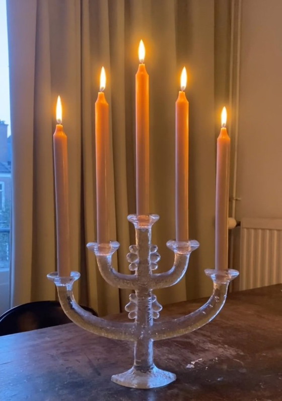 Seltener Kandelaber aus Pukeberg, Schweden, von Staffan Gellerstedt aus den 1960er Jahren. Schwer (2380 Gramm), handgefertigt aus einem einzigen Stück Glas.