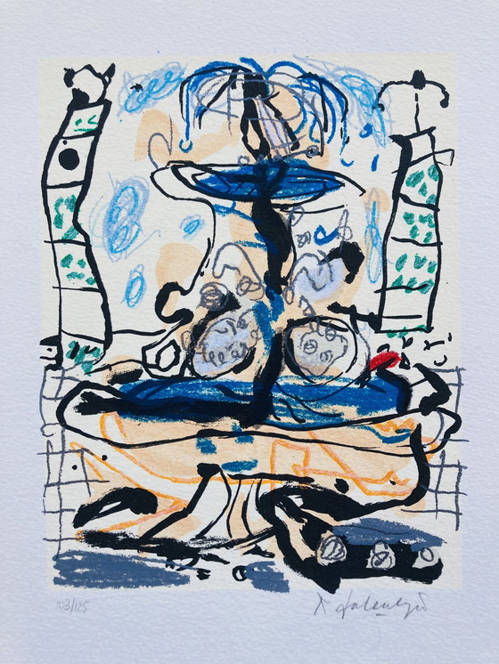 Ein schöner Siebdruck des Künstlers Kees Salentijn. Handsigniert und nummeriert. Das Werk ist in perfektem Zustand. Kees Salentijn (Amsterdam 1947) wurde an der Rijksacademie van beeldende kunsten und an der Gerrit Rietveld Academie in Amsterdam ausgebildet. Er lebt und arbeitet in Amsterdam. Salentijns erste Werke sind der "spanischen Periode" zuzuordnen und zeichnen sich durch Stierkämpfe aus, die Salentijns Gefühlsleben repräsentieren und in gemischten Medien dargestellt werden. Die "schwarze Periode", Mitte der 1980er Jahre, konzentriert sich auf den Kampf, den Salentijn bei jedem Bild empfindet. 1986 entwickelt Salentijn eine Malerei, die er selbst als Mediterranismus bezeichnet. Die Bildsprache dieser Kunst, die sich durch eine Dominanz der Sonne und der Farben auszeichnet, entstammt der Musik und nostalgischen Gefühlen. Ab 1990 wandelt sich die Verbindung von Figuration und Abstraktion zu einer expressiveren, narrativen Figuration. Hinweis: Die Nummerierung kann aufgrund von Mehrfachkopien vom Foto abweichen. Einrahmung des Werks? Die Galerie Rotor kann Ihnen jede Option anbieten. Sie können das Werk in Gorinchem besichtigen/abholen oder es sich liefern lassen.