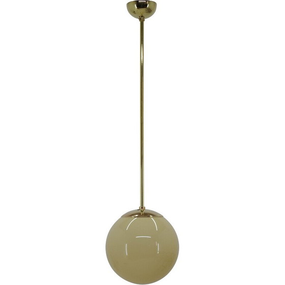 Klassische Bauhaus-Hängeleuchte aus Messing und geblasenem Glas, 1930