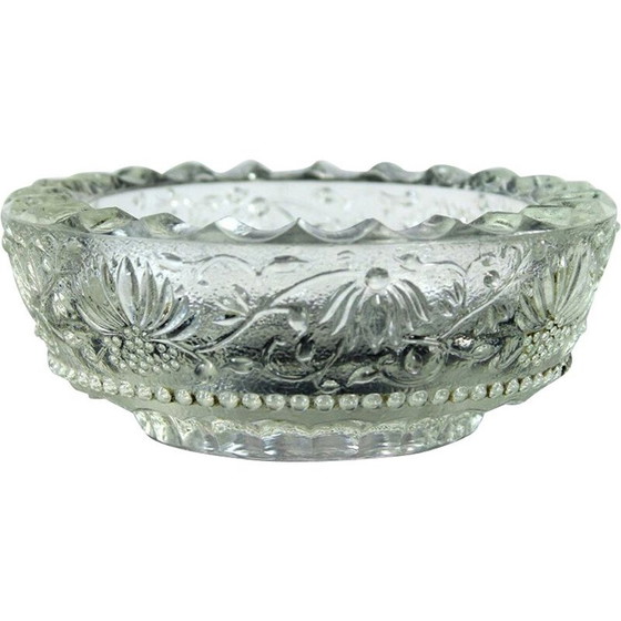 Schöne Vintage-Dekoration in ausgezeichnetem Zustand. Eine in der Tschechoslowakei in den 1960er Jahren gepresste Glasschale. Tschechisches Glas aus den 1960er Jahren war weltberühmt für seine Qualität und erstaunliche Details. Diese schöne Schale ist der Beweis dafür. Ursprünglich war diese Schale ein Aschenbecher, aber jetzt kann man sie als Schale für alles Mögliche verwenden. Oder einfach als Dekorationsobjekt, denn die Details und die Qualität des Glases machen es zu einem erstaunlichen Objekt an sich. Keine Beschädigung.