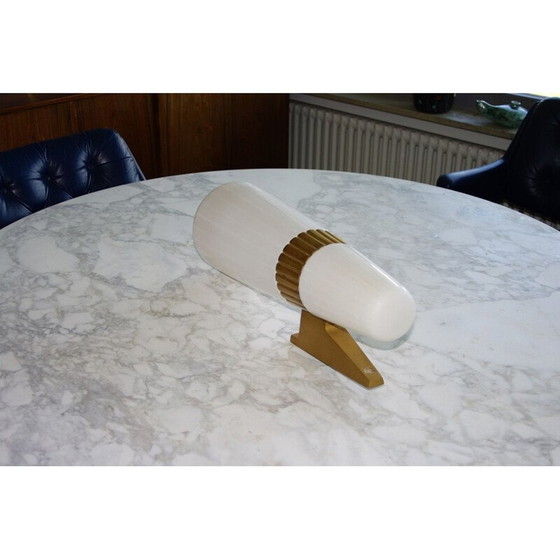 Große Vintage Glas und Metall Wandleuchte aus den 60er Jahren in gutem Zustand original Bronze Farbe kleine fehlt auf dem Glas Schraube Schritt ohne Auswirkungen.