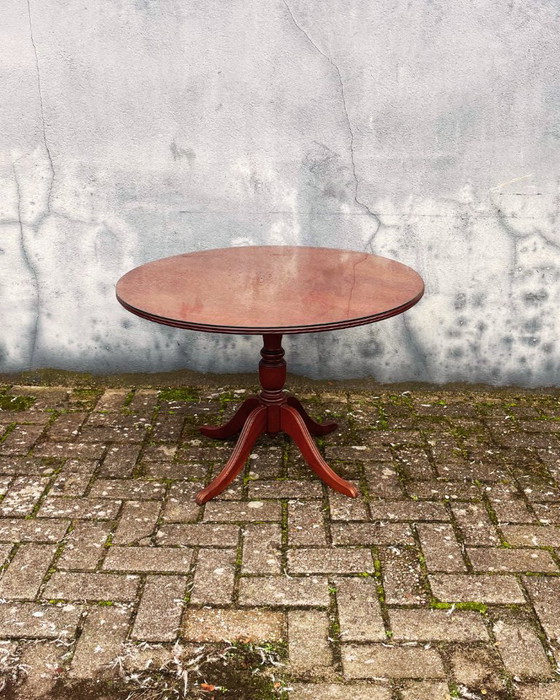 Klassischer runder Couchtisch im Queen-Anne-Stil. Mit Glasplatte und verziertem Bein. Guter Zustand, leichte Kratzer im Holz und Glas sowie ein kleiner Chip im Glas (siehe Foto).