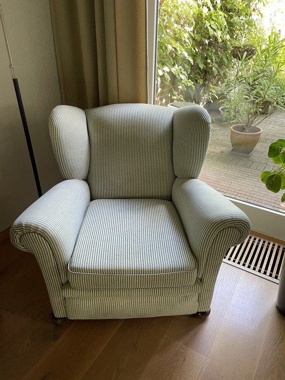 Klassischer Sessel in gutem Zustand mit sehr festem Baumwollbezug.
