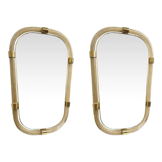 Paar italienischer Murano-Glas-Wandspiegel mit Blattgoldverzierung im venezianischen Torciglione-Stil