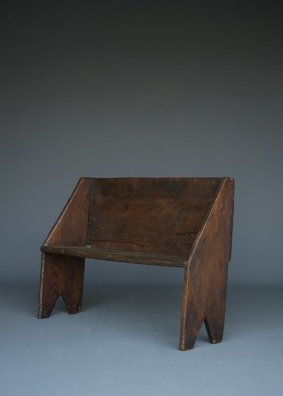 Eine kleine, formschöne Bank. Ihre ansprechende Patina und die ideale Größe machen sie zu einer guten Wahl für den Flur. Die Bank ist stabil und voll funktionsfähig. Sie war einst von Holzwürmern befallen, wurde aber seitdem mehrfach behandelt und das Holz mit einem Härter imprägniert, um es zu stabilisieren.
