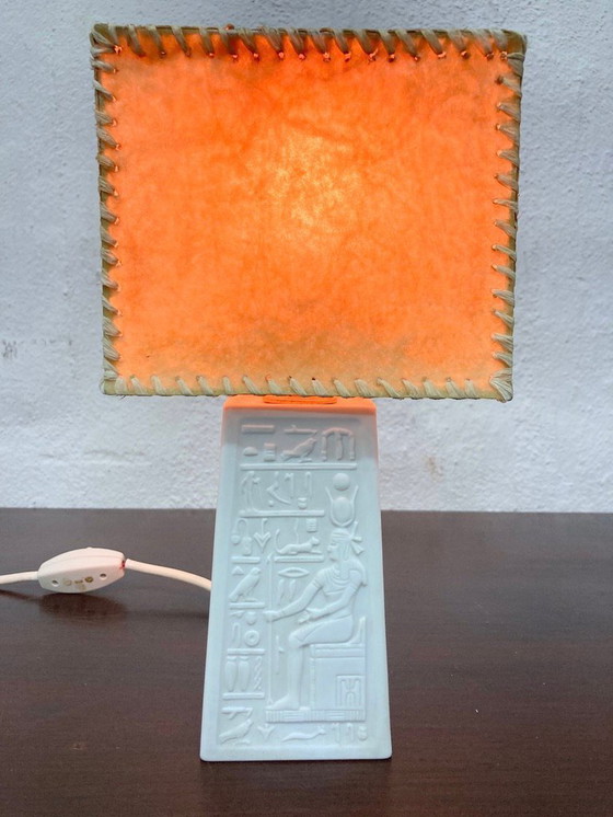 1 kleine Tischlampe aus den 50er 60er Jahren, entworfen von Hans Achtziger für Hutschenreuther. Lampenfuß mit altägyptischen Motiven
