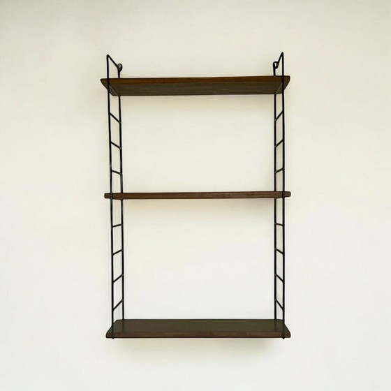 Kompaktes Mid Century String-Regal mit drei Regalböden. Original 1960er Jahre String / Leiter - Regal im Stil von WHB, Nissen un