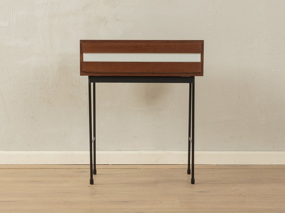 Charmante Kommode von Hans-Agne Jakobsson aus den 1950er Jahren. Korpus in Teakholzfurnier mit einer Flügeltür, die mit originalem cremeweißem Formica beschichtet ist, und einem schwarz lackierten Metallrahmen. Hergestellt in Schweden, Hersteller: Hans-Agne Jakobsson AB Markaryd. Ref 2403045