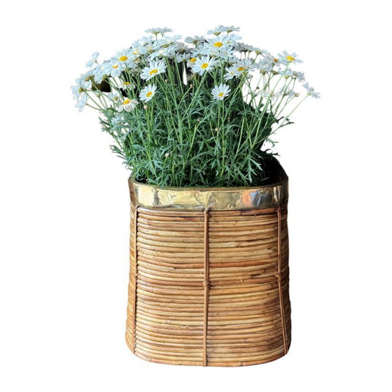 Korb aus Rattan und Messing | Italien | 1970er Jahre