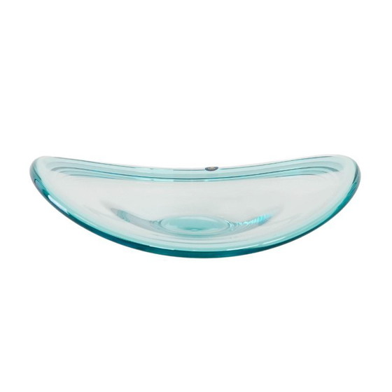 Eine große, handgeformte Kristallplatte mit organischer, fließender Form. Eine minimalistische und dennoch äußerst elegante Form, typisch für den dänischen Modernismus der 1960er-Jahre. Subtile Lichtbrechungen und ein leicht bläulicher Schimmer des Glases verleihen Tiefe und einen skulpturalen Charakter. Ein zeitloses Beispiel skandinavischen Designs, das sowohl als Dekorationsobjekt als auch als Gebrauchsgegenstand überzeugt.