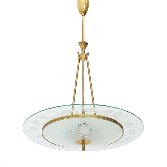 Die raffinierten Linien und die dekorativen Details machen diese Hängeleuchte zu einem perfekten Beispiel für das italienische Nachkriegsdesign, das Leichtigkeit mit der Qualität der Materialien verbindet.
