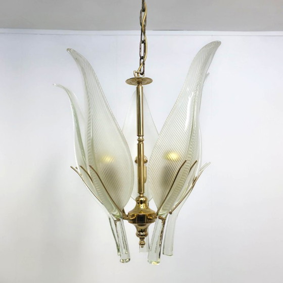 Erhellen Sie Ihren Raum mit der zeitlosen Eleganz dieses Kronleuchters von Franco Luce, einem atemberaubenden Stück aus den 1970er Jahren. Gefertigt aus exquisitem Muranoglas, fängt dieser Kronleuchter mit seinen anmutigen, organischen Formen und luxuriösen Messingakzenten die Essenz des Mid-Century Modern-Designs ein.