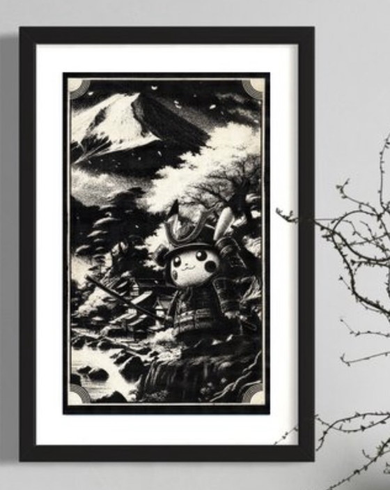 Kunstwerk Pikachu (Pokémon) Sturm über Fuji