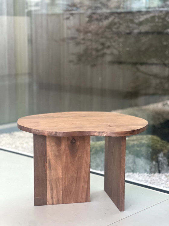 Dieser Beistelltisch ist aus massivem Walnussholz gefertigt. Mit seinen originellen organischen Linien schafft er eine natürliche Ausstrahlung. Das warme Holz bringt Atmosphäre und Ruhe.