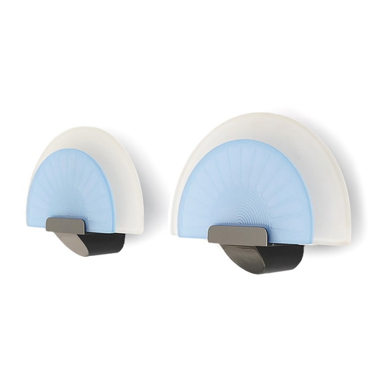 Jede Lampe verfügt über zwei halbmondförmige Diffusoren aus Pressglas - einer in Weiß und einer in Blau -, die einen raffinierten, skulpturalen Lichteffekt erzeugen.