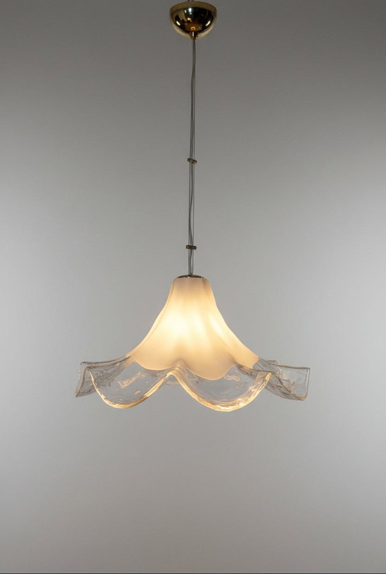 Erhellen Sie Ihre Räume mit der zeitlosen Eleganz der La Murrina Murano-Glas-Pendelleuchte aus den 1970er Jahren. Dieses exquisite Stück zeugt von der renommierten Handwerkskunst der Murano-Glasmacher und vereint Form und Funktion auf elegante Weise. La Murrina war ein Unternehmen, das in Venedig von einer Gruppe Murano-Glashandwerker gegründet wurde und sich auf hochwertige, mundgeblasene Glasdekorationen spezialisierte. Jedes Stück ist ein Unikat und, wie auch dieses, signiert und mit einem kleinen Glas-Ensigna versehen. Später wurde das Unternehmen von einer Mailänder Firma übernommen, die bis heute besteht, jedoch farbenfrohe Glasprodukte in Serie herstellt.