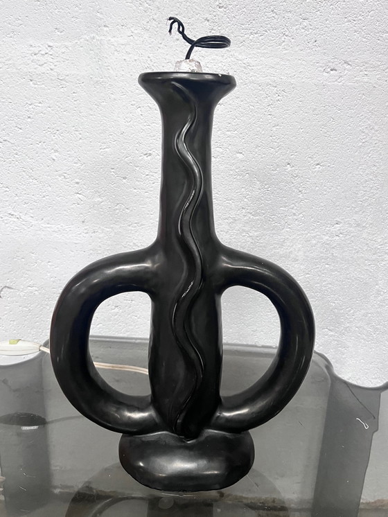 Freiform-Lampenfuß aus Keramik, signiert Gil Agnoloni, 1960. Französische Keramik, berühmt für seine zoomorphen schwarzen Lampen. Zu elektrifizieren + eine Fassung installieren. Abmessungen: B 24 x T 10 x H 33 cm.