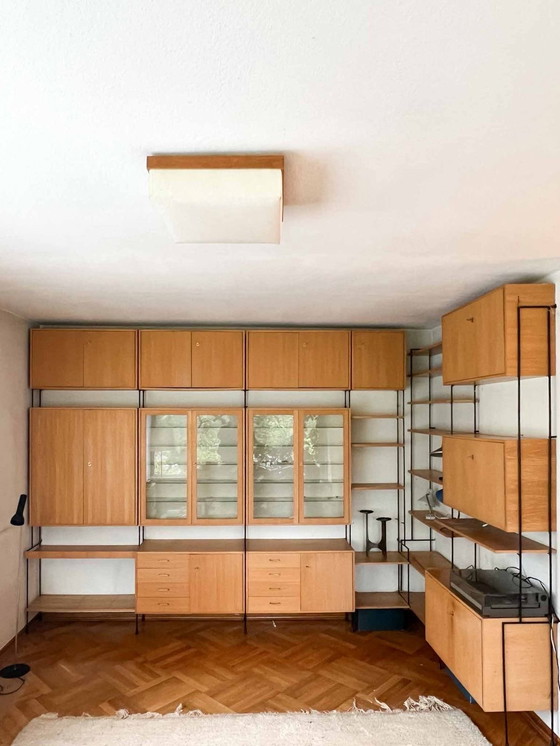 Introducing the Omnia shelving unit, a quintessential piece of German design that embodies the elegance and functionality of mid-century modern aesthetics. This classic shelving unit is a testament to timeless craftsmanship, offering both style and practicality for your living space.
