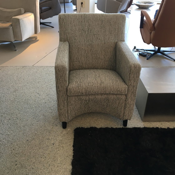 Leolux Dolcinea Sessel. Der Dolcinea ist mit dem Stoff Ploeg Oregon 05 in einem hellgrauen Farbton mit dunkelgrauen Akzenten bezogen. Der Sessel bietet eine komfortable Sitztiefe von 3 cm – ideal zum Entspannen und Genießen. Die eleganten Beine sind aus Epoxidharz in der Farbe E1500 gefertigt. Dieser exklusive Sessel kann nur im Showroom besichtigt und abgeholt werden. Eine Lieferung ist auf Anfrage möglich. Nutzen Sie dieses einmalige Angebot: Es sind nur zwei Sessel verfügbar.
