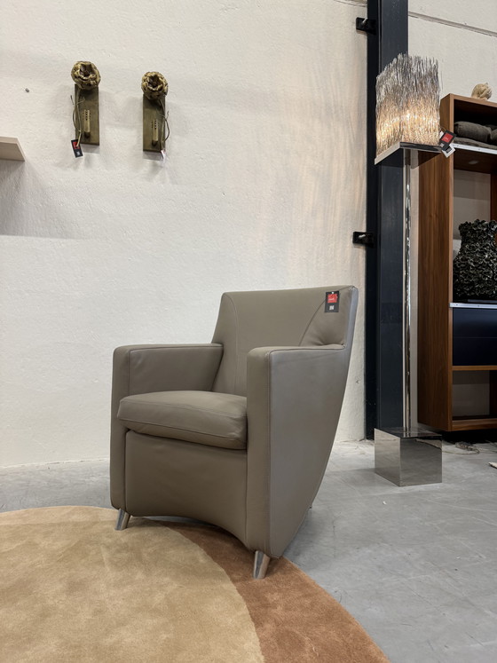 Leolux Dolcinea Sessel, bezogen mit grauem Leder.
