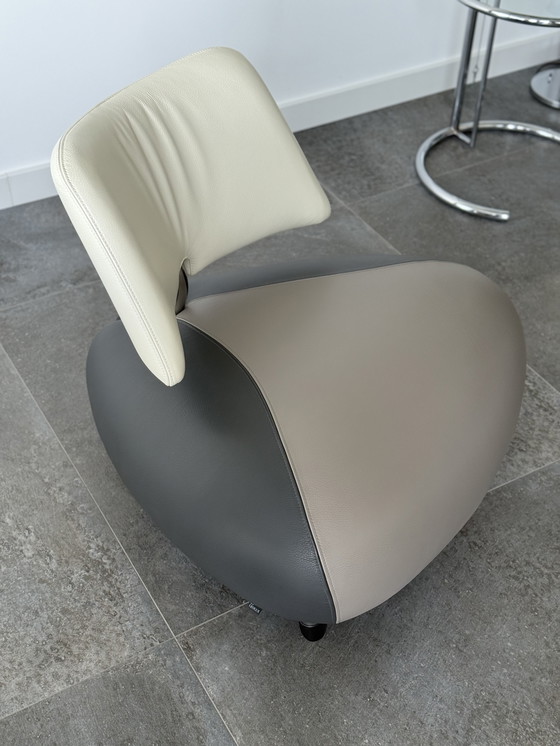 Der Leolux Palone ist ein moderner Sessel mit einem einzigartigen Design in einer Kombination aus cremefarbenem, grauem und beigem Leder. Die eleganten Metallakzente verleihen dem Sessel einen eleganten Look und ergänzen perfekt zeitgenössische Interieurs. Der Sessel befindet sich in einem ausgezeichneten Zustand und bietet sowohl Stil als auch Komfort für jeden Wohnraum.