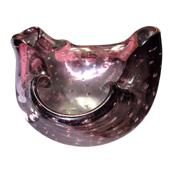 Dieser wunderschöne, violette Murano-Glas-Aschenbecher ist ein raffiniertes Beispiel für Handwerkskunst und Eleganz. Die feinen Bläschen im Glas verleihen ihm eine einzigartige Textur und optische Tiefe und machen ihn zu einem echten Blickfang in jedem Raum.