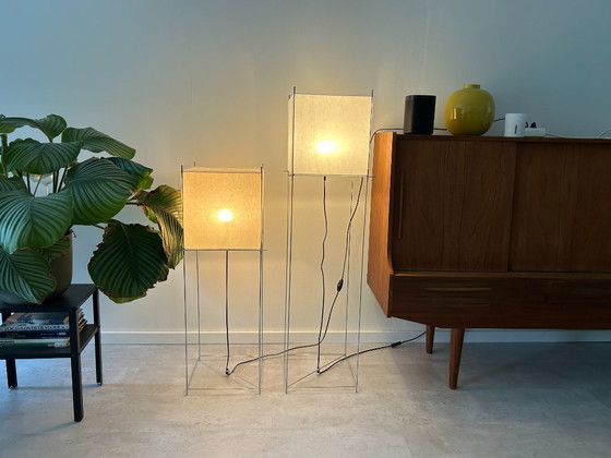 Lotek Lampe Benno Premsela Die Lotek Lampe, 1982 von Benno Premsela entworfen, ist heute eine Stilikone. Die Lampen sind mit dem Originalstoff versehen und können in verschiedenen Höhen aufgebaut werden. Der Originalkarton ist bei beiden Lampen vorhanden.