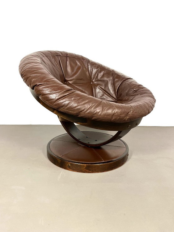 Lounge-Sessel im Space-Age-Stil mit drehbarem Fuß und Lederbezug, 1970er Jahre