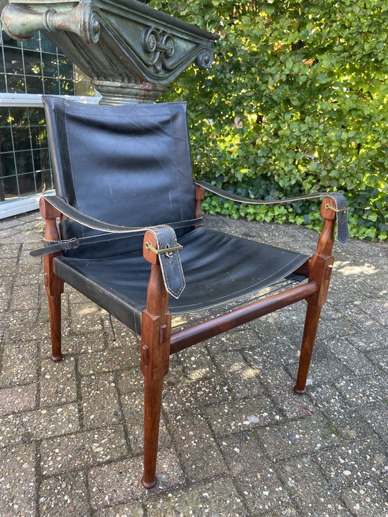 Tauchen Sie ein in die Welt der zeitlosen Eleganz mit diesem M. Hayat Safari-Stuhl, einer perfekten Mischung aus Vintage-Charme und funktionellem Design. Mit seinem robusten Holzrahmen und dem luxuriösen schwarzen Leder ist dieser Stuhl ein Zeugnis klassischer Handwerkskunst.