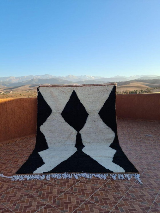 Marokkanischer schwarz-weißer Teppich aus Naturwolle, 200 cm x 300 cm