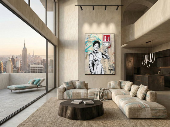 Dieses Werk vereint Street Art und Pop Art in einem modernen und ausdrucksstarken „New Pop“-Stil.