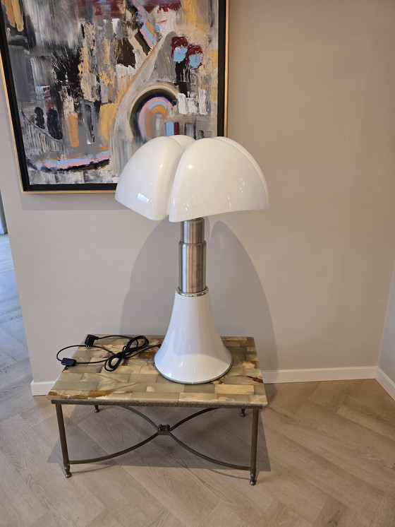 Die Martinelli Luce Pipistrello Leuchte vereint Eleganz und Vielseitigkeit. Diese ikonische Steh- und Tischleuchte besticht durch ihren modernen Look mit weißem Schirm und Metallfuß. Sie ist die perfekte Ergänzung für jeden Raum, der Stil und Funktionalität benötigt.