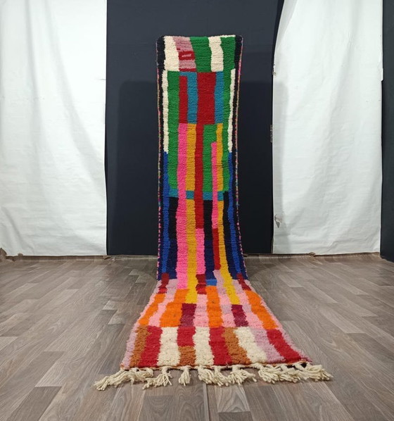 Tauchen Sie ein in die lebendige Anziehungskraft dieses mehrfarbigen Berberteppichs, der aus feinster Wolle mit viel Liebe zum Detail gefertigt wurde. Seine beeindruckende Farbpalette und das traditionelle Design machen ihn zu einem faszinierenden Blickfang in jedem Raum und verleihen Ihrem Zuhause Wärme und kulturelle Vielfalt. Perfekt, um Ihrer Einrichtung einen Hauch exotischer Eleganz zu verleihen.