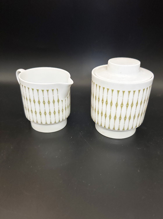 Dieses Milchkännchen und diese Zuckerdose aus Porzellan wurden in den 1970er Jahren von Melitta in Westdeutschland hergestellt. Sie sind in sehr gutem Zustand.