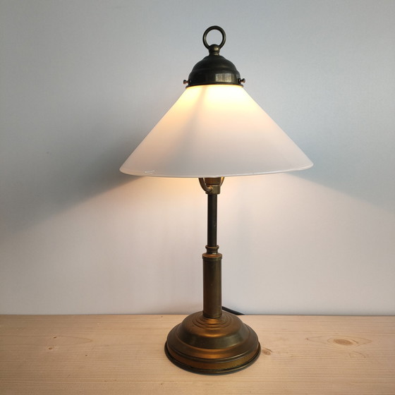 Messing-Tischlampe Schreibtischlampe Französisch mit Opalin-Schirm