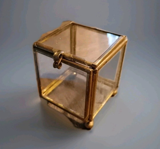 Diese elegante Box aus Messing und Glas aus den 1970er-Jahren ist ein raffiniertes Beispiel für Vintage-Design und verleiht jedem Raum einen Hauch von Klasse. Der vergoldete Messingrahmen umgibt die klaren Glasscheiben und erzeugt so einen optischen Effekt von Leichtigkeit und Transparenz.