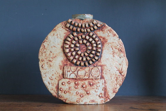 Originale Keramikvase aus der Mitte des 20. Jahrhunderts im Stil des Brutalismus. Das Stück stammt vermutlich aus den Bernard Rooke Studios, ist jedoch nicht signiert. Datiert auf die späten 1960er/frühen 1970er Jahre. Guter, unrestaurierter Zustand, möglicherweise mit einem feinen Brennriss (siehe Fotos 5 und 6).