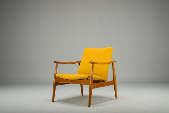 Der Sessel wurde von Finn Juhl entworfen und in den 1960er Jahren von France & Søn in Dänemark hergestellt. Der Sessel wurde in unserer eigenen Werkstatt renoviert, Wir haben Hartwachsöl verwendet, um das Gestell zu beenden und die Polsterung wurde mit dem ursprünglichen Material ersetzt - "Kvadrat", Die Renovierung wurde durchgeführt, um kleine Gebrauchsspuren und Patina zu erhalten