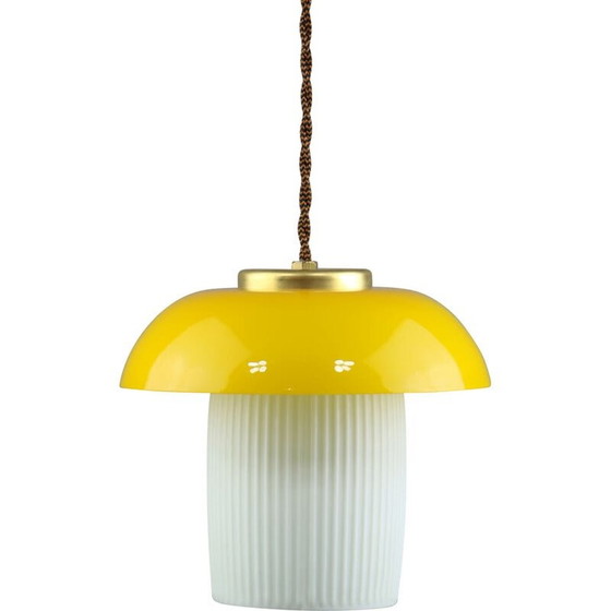 Mid Century gelbe Glas und Messing Mushroom Pendelleuchte