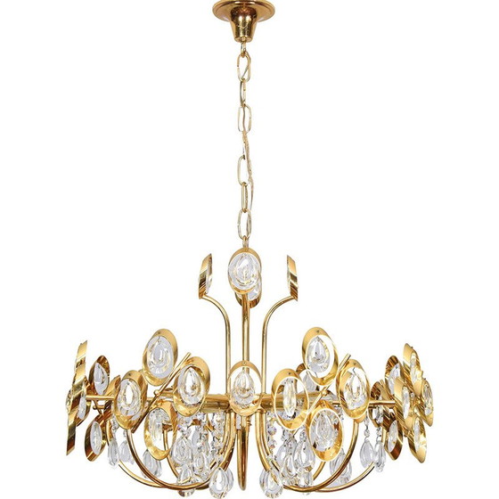 Schillernder Kronleuchter aus goldenem Messing und Kristallen, hergestellt von Palwa Deutschland in den 60er Jahren.