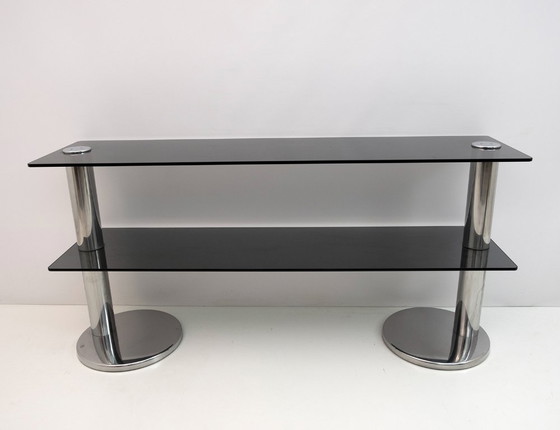 Mid-Century Modern Italienische Konsole aus verchromtem Stahl und Rauchglas, 1970er Jahre