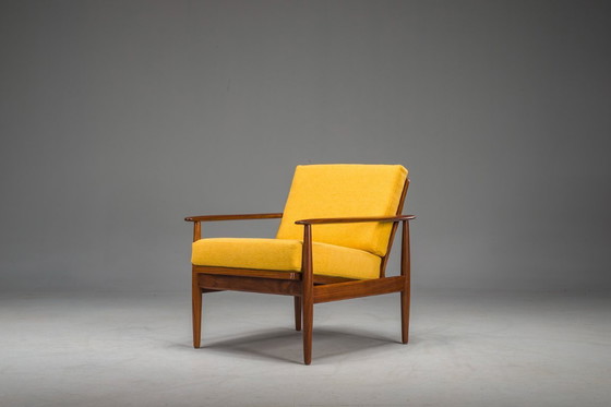 Mit diesem wunderschön restaurierten Loungesessel, der von den kultigen skandinavischen Designs der 1960er Jahre inspiriert ist, machen Sie einen Schritt zurück in die Vergangenheit. Dieses wahrscheinlich in Deutschland hergestellte Stück verkörpert die Eleganz und den Komfort der modernen Ästhetik der Jahrhundertmitte.